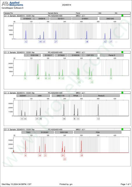 Amelogenin X CSF1PO 10,12 D2S1338 20,22 D3S1358 18 D5S818 10,13 D7S820 9,12 D8S1179 16 D13S317 8,11 D16S539 12,13 D18S51 18 D19S433 12 D21S11 27 FGA 18 PentaD 9 PentaE 13 TH01 6 TPOX 8,11 vWA 15,18 D6S1043 12,17 D12S391 16,21 D2S441 11,14 -