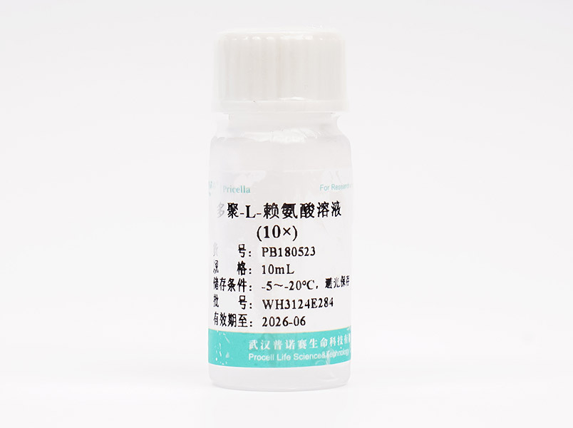 1、稀釋:用無(wú)菌純化水或PBS溶液9:1稀釋該多聚-L-賴氨酸溶液至工作濃度(0.1 mg/mL),稀釋的多聚-L-賴氨酸溶液在2-8℃中保存至少3個(gè)月有效。