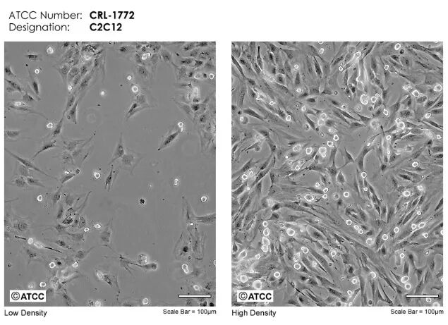 C2C12 (小鼠成肌細(xì)胞)是由D·Yaffe和O·Saxel建立的小鼠成肌細(xì)胞株的亞克隆。C2C12細(xì)胞分化很快,容易形成可伸縮的肌管并生成特征性的肌蛋白。用骨形成蛋白2(BMP-2)處理C2C12細(xì)胞,會(huì)導(dǎo)致C2C12細(xì)胞的分化途徑從成肌細(xì)胞轉(zhuǎn)換為成骨細(xì)胞。
